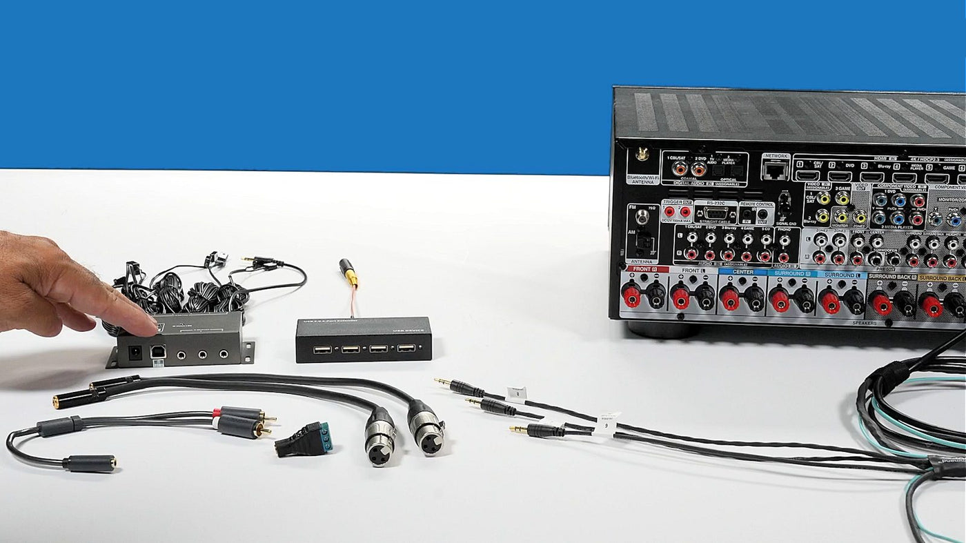 여러 개의 커넥터로 종단 처리된 단 하나의 케이블로 AV 실의 모든 신호를 홈 시어터에 연결합니다.